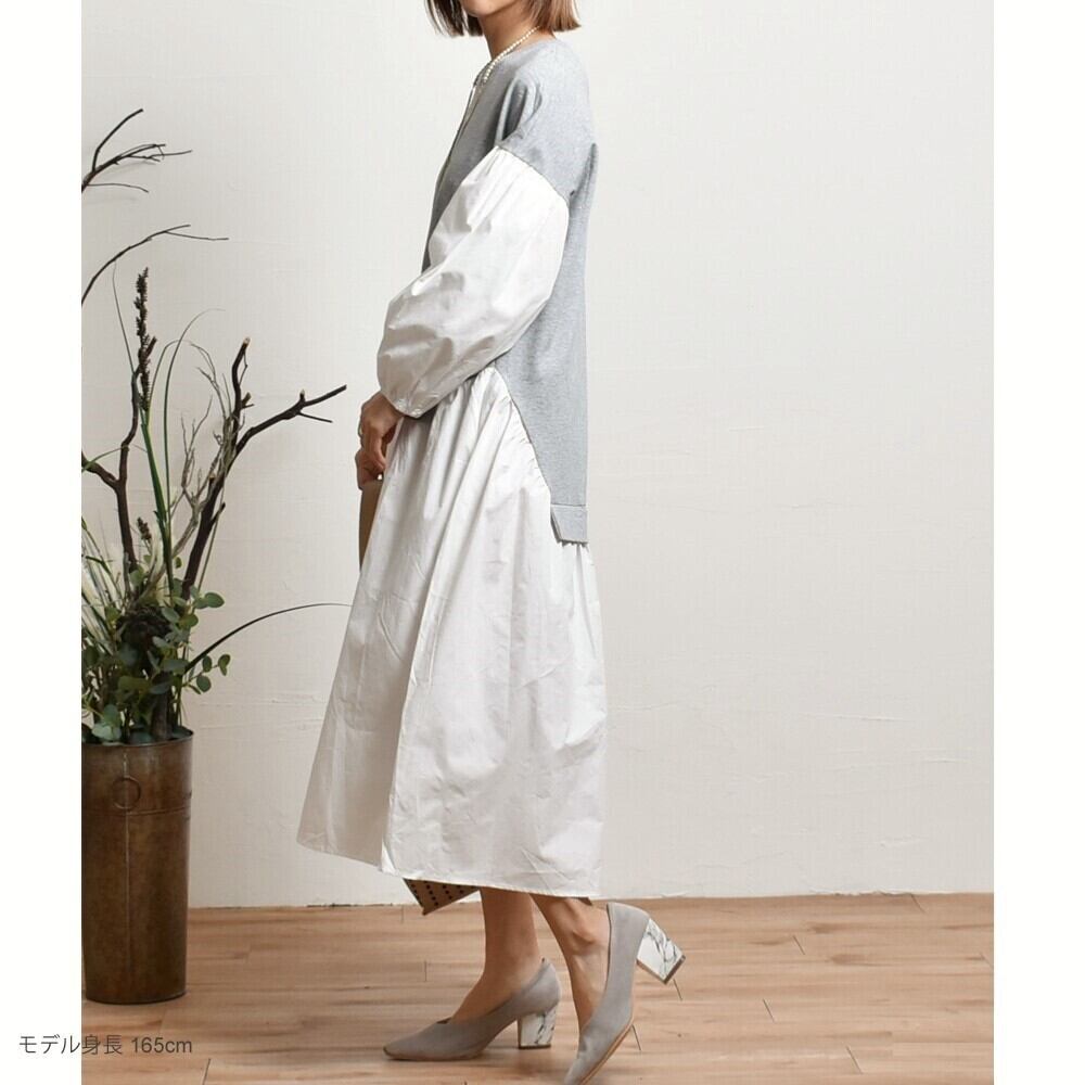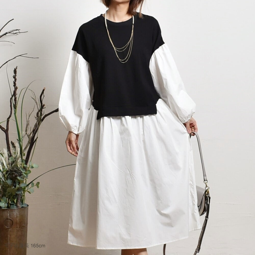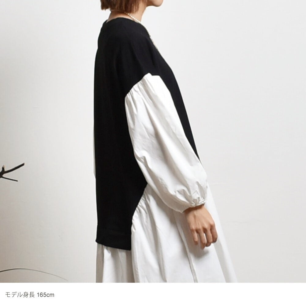 身頃部分との異素材合わせでお洒落感をプラス。シンプルでありながらも個性的なデザインなので、さらっと着るだけでコーデが決まります!アクセサリーも合わせやすく、足元はロングブーツやショートブーツ、パンプスなど、雰囲気の違いをイロイロ楽しんで頂ける一着です。